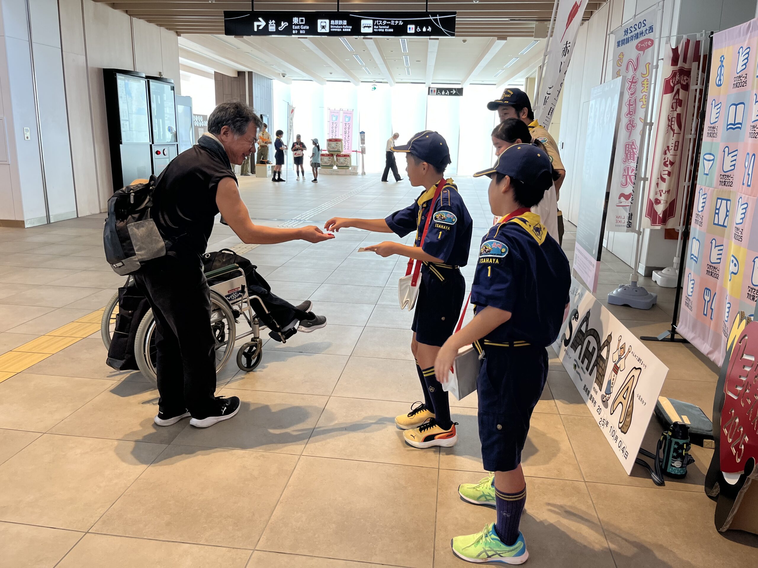 日本ボーイスカウト諫早第1団では、毎年ボーイスカウトの活動の一環として、赤い羽根共同募金の街頭募金活動に取り組まれています。
