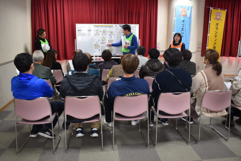研修では、長崎市市民活動センターのセンター長 関根志朗氏から「わたしにできる災害ボランティア」と題し、災害ボランティア活動でのご経験をもとに、具体的な活動のヒントや、日頃から地域のつながりを持つことの大切さなどをご講義いただきました。また、講義の後は、災害ボランティアセンター設置運営訓練を運営者役と災害ボランティア役に分かれて実施しました。