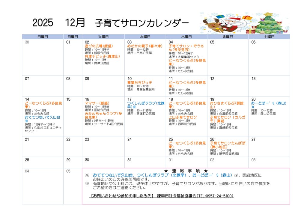 こちらをクリック👉令和7年12月子育てサロンカレンダー