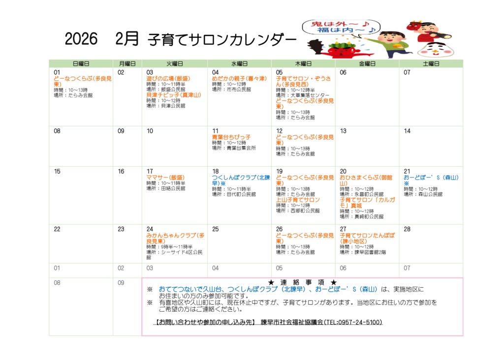こちらをクリック👉令和8年2月子育てサロンカレンダー